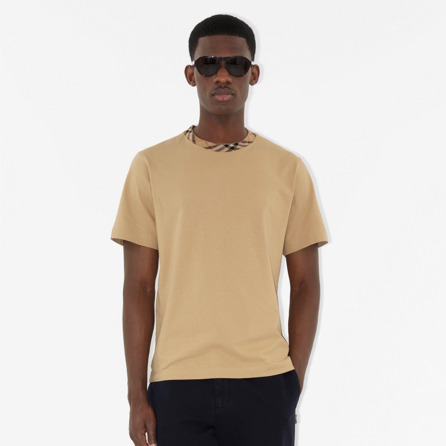 T-shirt in cotone con finiture Check – APREA BOUTIQUE